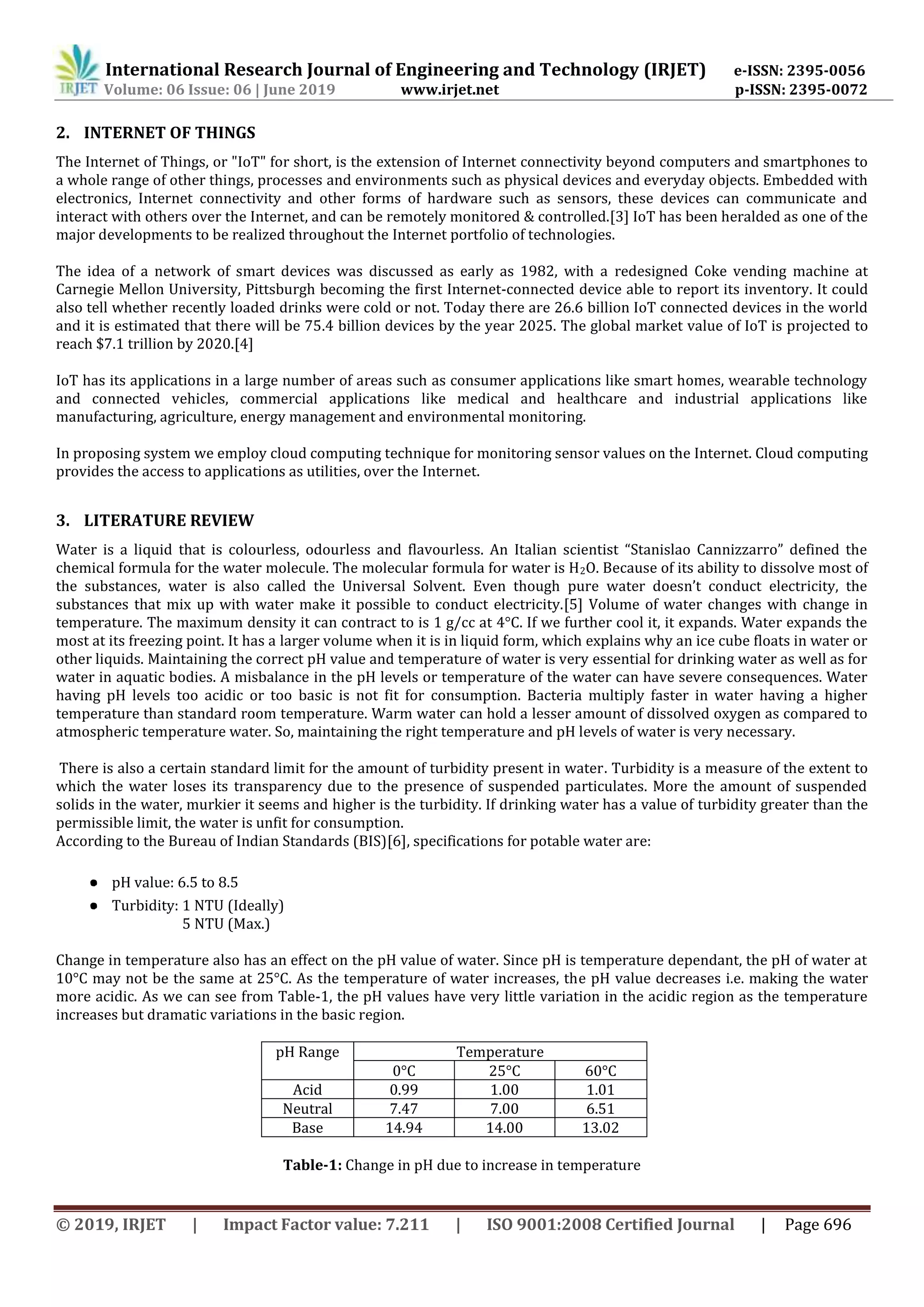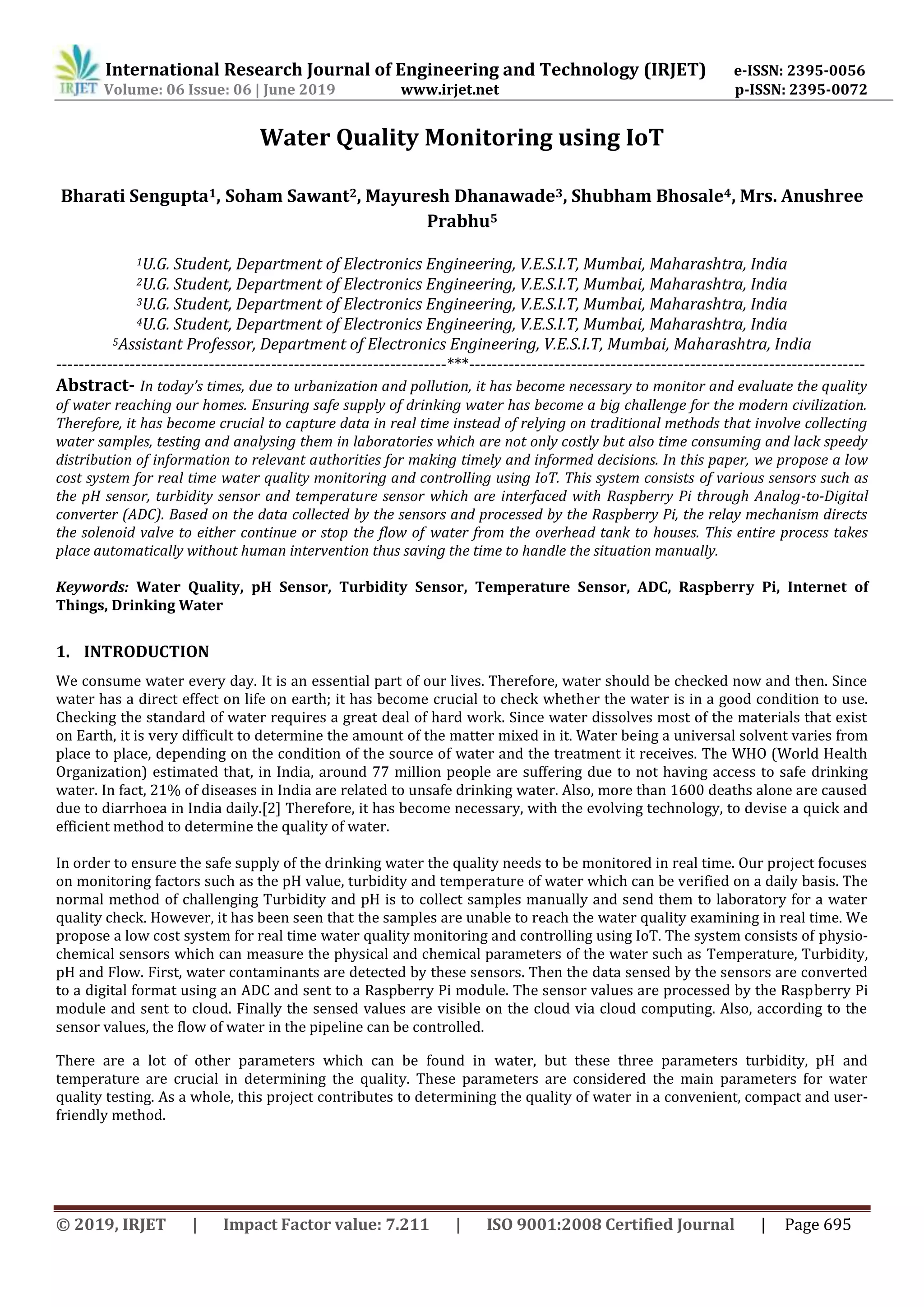 1) The document describes a system for real-time water quality monitoring and control using IoT.