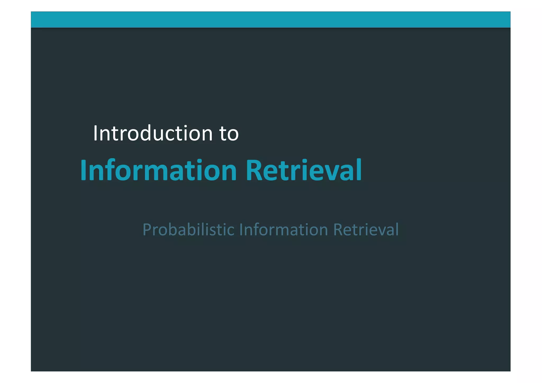 The document provides an introduction to probabilistic information retrieval and the binary independence model. It discusses how probabilities can be used to quantify uncertainties in information retrieval. The binary independence model uses probabilities to estimate the relevance of a document to a query based on term matching. It makes independence assumptions to estimate probabilities of terms appearing in relevant and non-relevant documents to calculate retrieval status values and rank documents.
