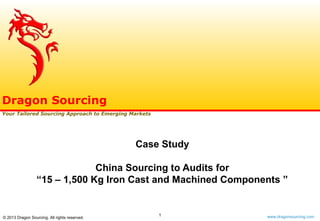 The document outlines a case study of a European packaging equipment supplier seeking to source iron cast and machined components from China to reduce costs. It details a structured supplier screening and qualification process, including demand analysis, RFI/RFQ development, audit recommendations, and a supplier scorecard. Ultimately, the client aimed to shortlist suppliers for pilot orders based on comprehensive evaluations of supplier capabilities and costs.