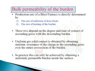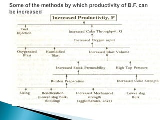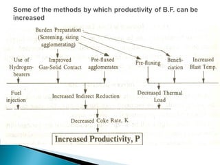 1. Blast furnace productivity depends on optimal gas flow and smooth, rapid burden descent which requires an optimized furnace profile and lines.
