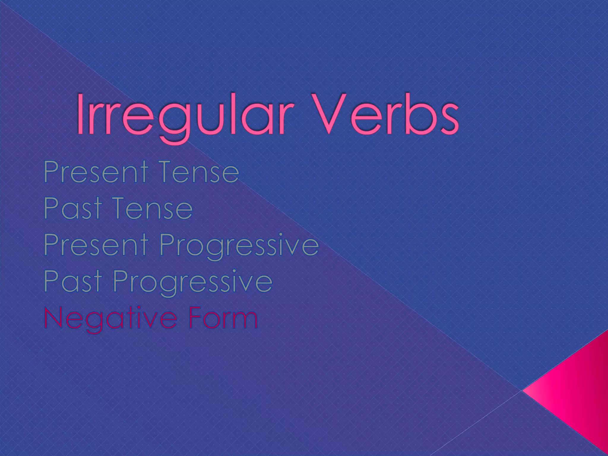 The document contains a series of statements describing various people and actions using incorrect verb conjugations and tenses. Each statement is structured with four lines indicating that the action did not, does not, or will not happen today, yesterday, now, or some other time in the past.
