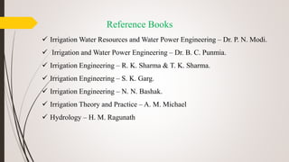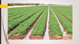 The document discusses the importance and methods of irrigation, highlighting its necessity due to insufficient and non-uniform rainfall, and the benefits of controlled water supply for crop yield. Various irrigation systems are explained, including flow and lift irrigation, along with the relationship between soil, water, and plants, emphasizing ideal soil conditions for optimal water retention and extraction. Additionally, it provides numerous problem sets related to calculating field capacity, available moisture, and irrigation water requirements based on soil characteristics.