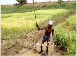 The document traces the evolution of irrigation methods from traditional human and animal-powered techniques to modern electric, diesel, solar, and smart irrigation systems. Early methods included joto irrigation powered by humans and Persian water wheels driven by animals. Later, diesel and electric pumps were introduced but were costly to maintain, operate, and not always accessible. More recently, solar panels have enabled off-grid irrigation and reduced fossil fuel dependence while sprinkler, drip, and sensor-based irrigation now deliver water directly to plant roots more efficiently.