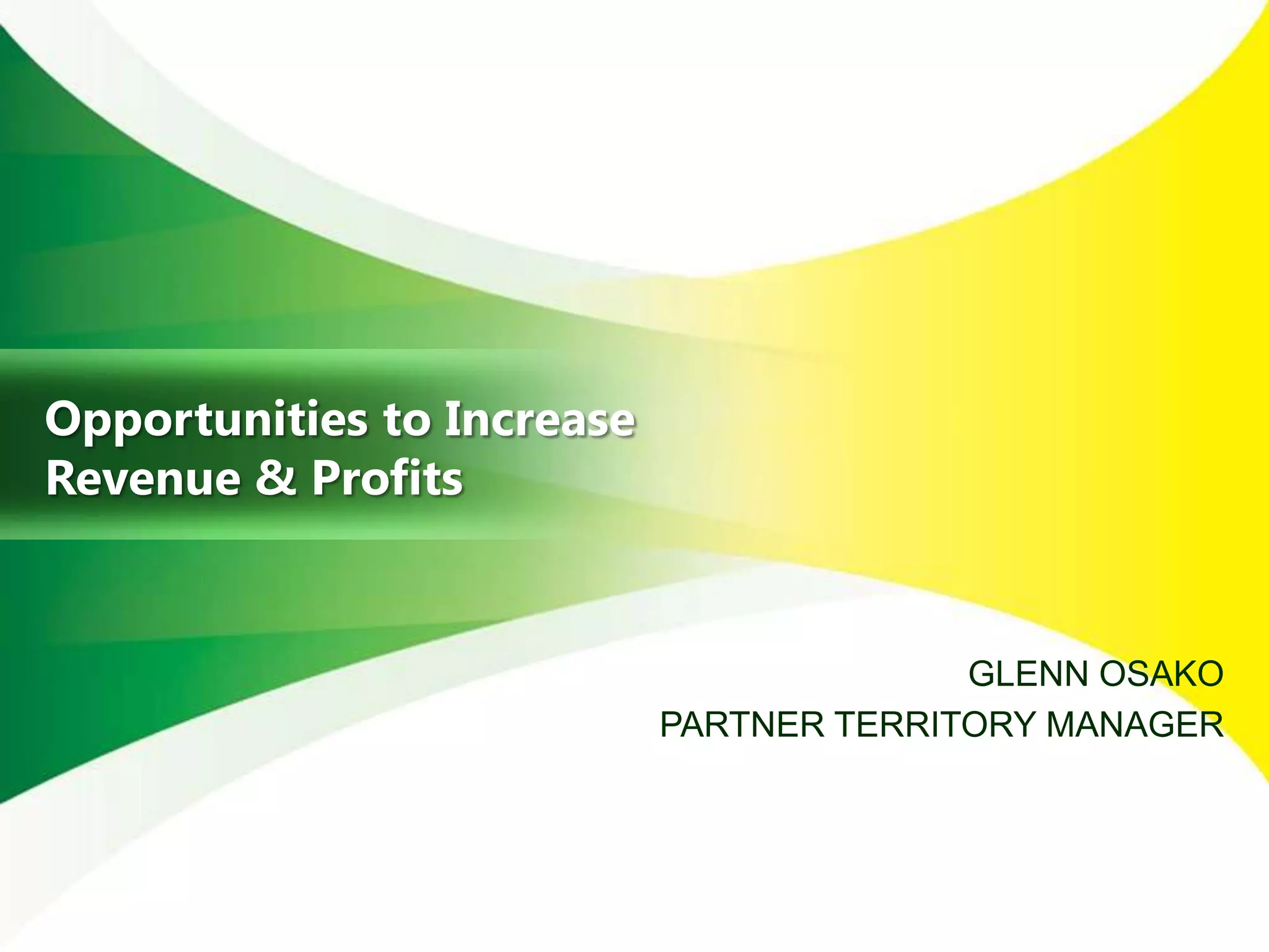 The document discusses opportunities for increasing revenue and profits through Microsoft's partner network. It provides statistics showing that Microsoft partners earned $8.70 for every dollar Microsoft made in 2009, totaling $10.1 billion that year. Partners who invested more in their business achieved 28% greater revenue per employee and 68% larger deal sizes. The document also describes several Microsoft partner programs, including the Top VAR program and VAR Champions Club, which provide benefits like incentives, marketing funds, and support to help partners grow their businesses.