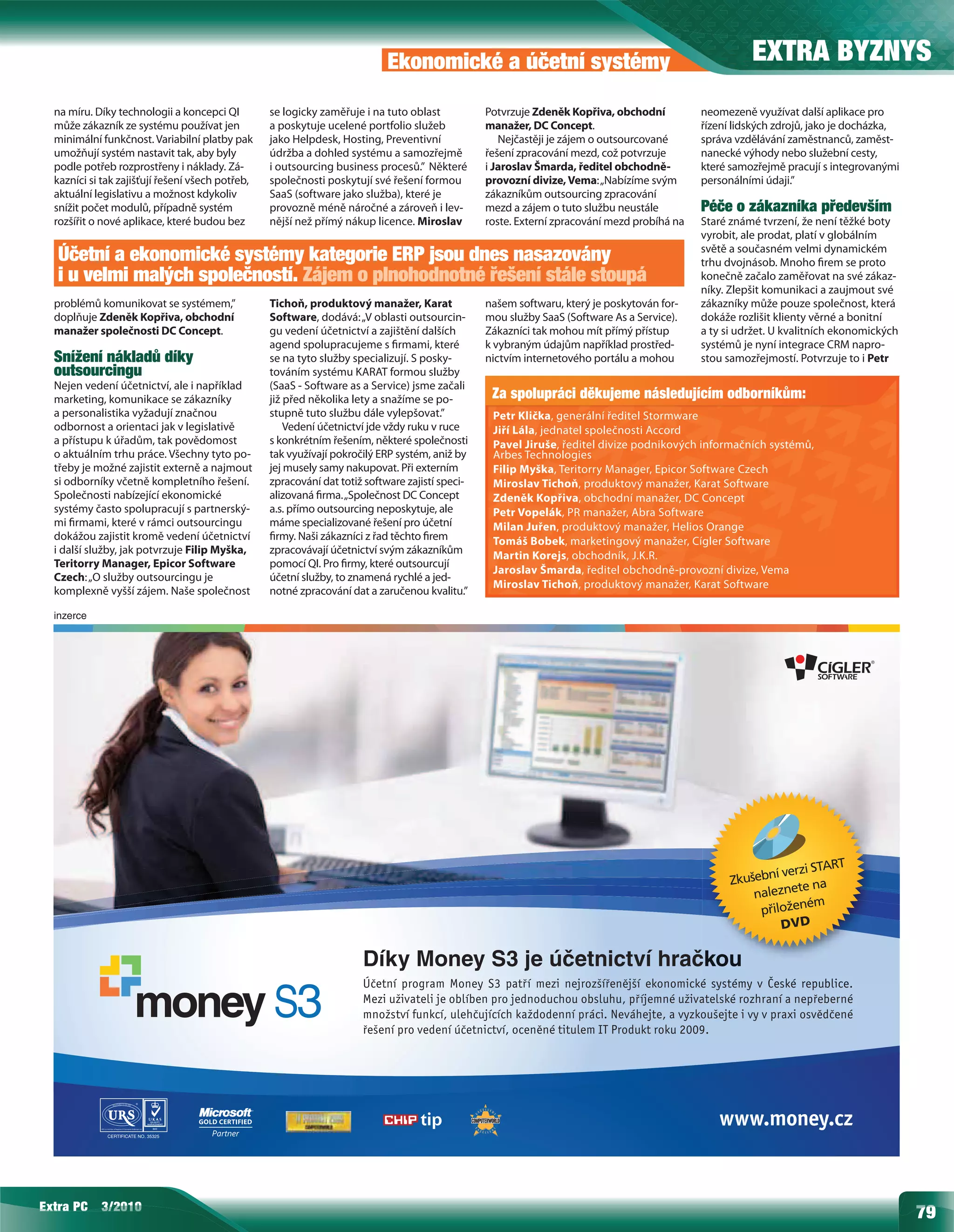 doplňuje Zdeněk Kopřiva, obchodní Software, dodává: „V oblasti outsourcin- mou služby SaaS (Software As a Service). dokáže rozlišit klienty věrné a bonitní