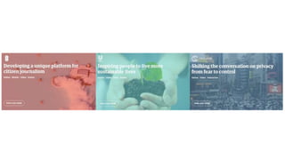 The document discusses the potential of creativity as a key metric for increasing investment in news brands, emphasizing their societal relevance and storytelling abilities. It suggests that marketing should better reflect news characteristics by focusing on societal relevance, longer-term brand projects, and generating unique news stories. Ultimately, leveraging creativity can enable a more significant role for news brands while respecting their unique context.