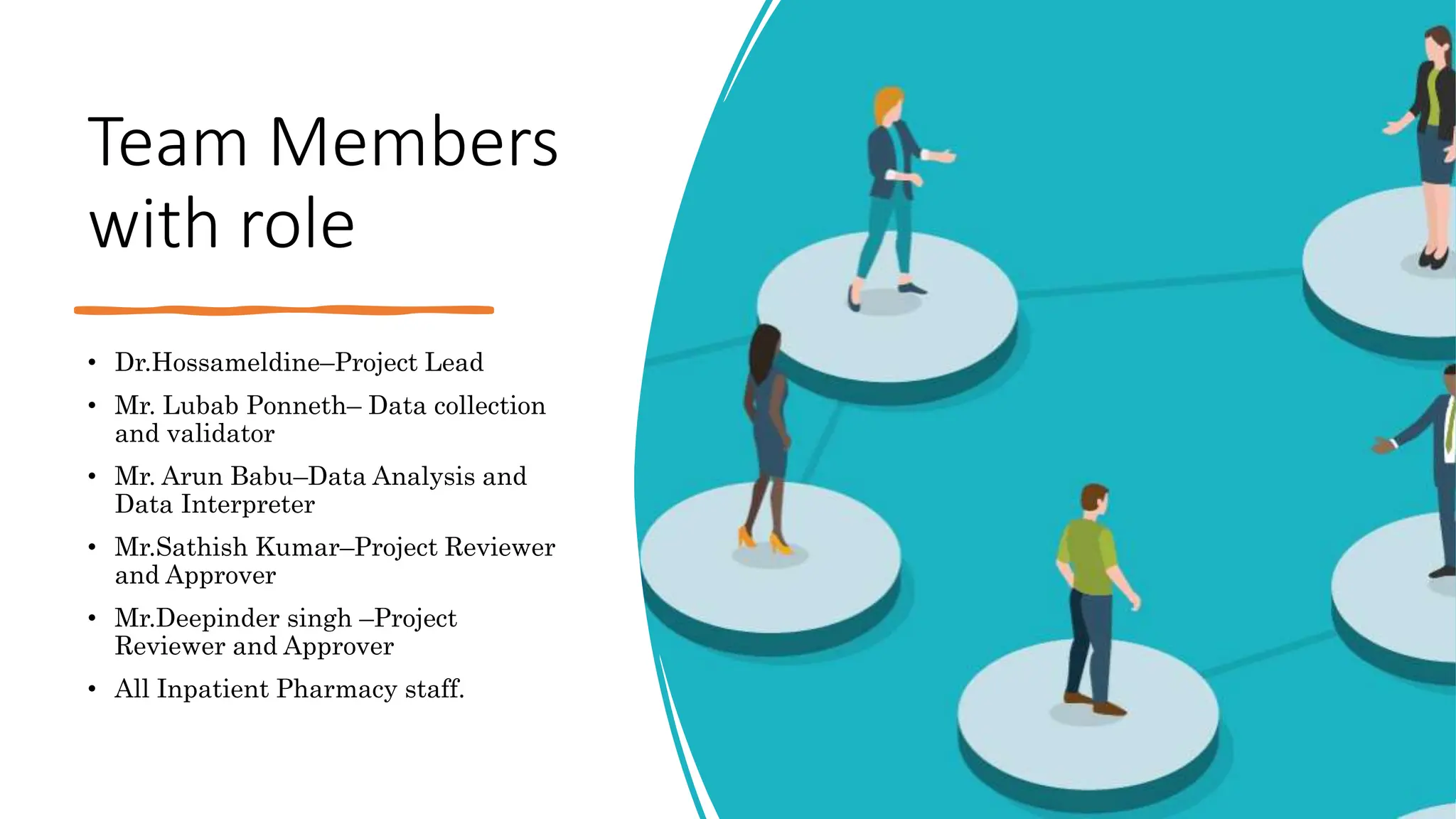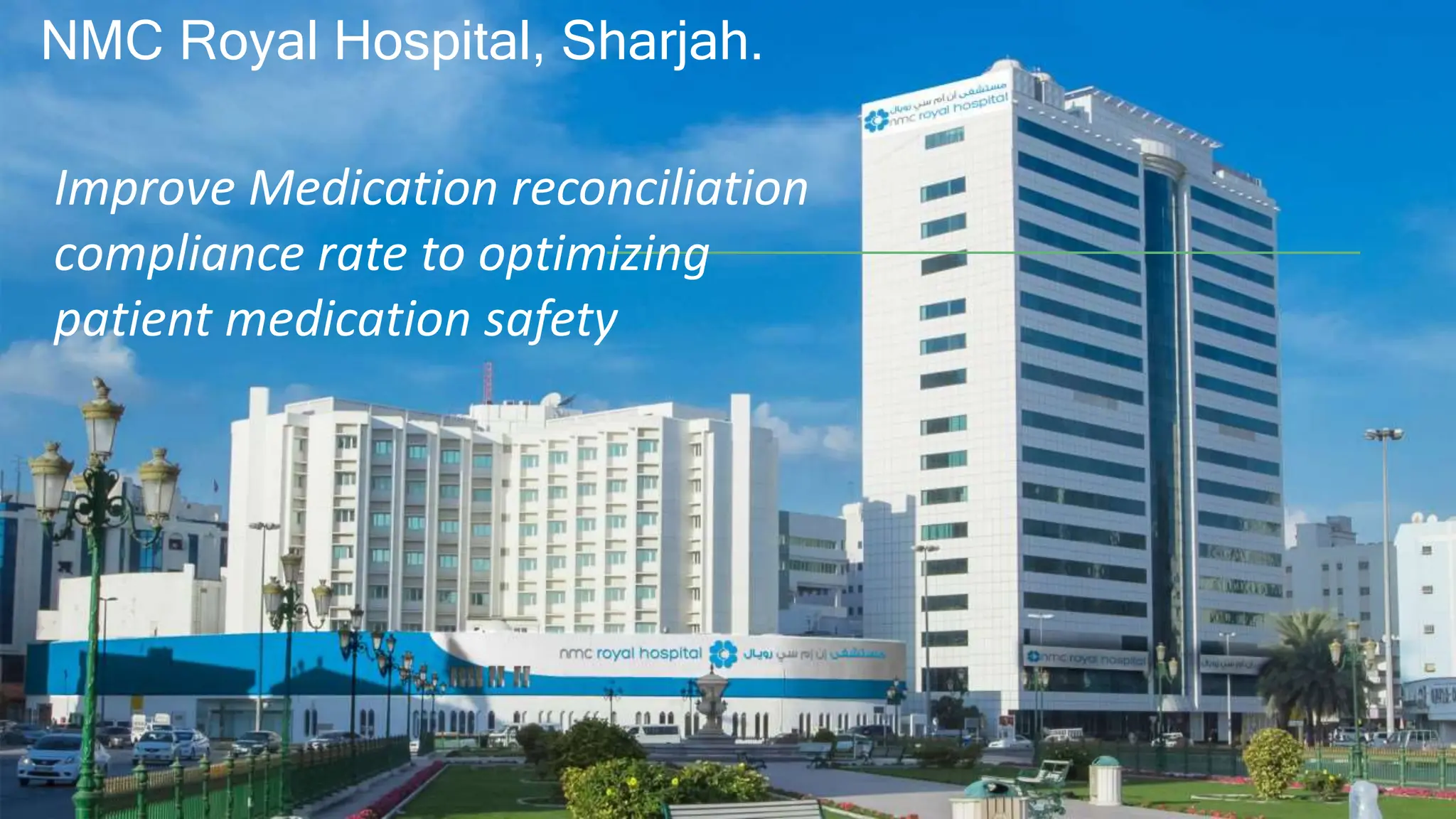 This document outlines a quality improvement project at NMC Royal Hospital in Sharjah to improve medication reconciliation compliance rates. The project team includes physicians, pharmacists, and data analysts. The goals are to reduce errors from omitted or duplicated medications by properly implementing reconciliation. Data on compliance rates is collected and shared monthly. Interventions to address non-compliance include training, reminders, and system changes. The results showed compliance gradually increased from initial rates below 30% to over 50% by the end of the period. The conclusion is that continued monitoring and interventions are needed to further optimize medication safety.