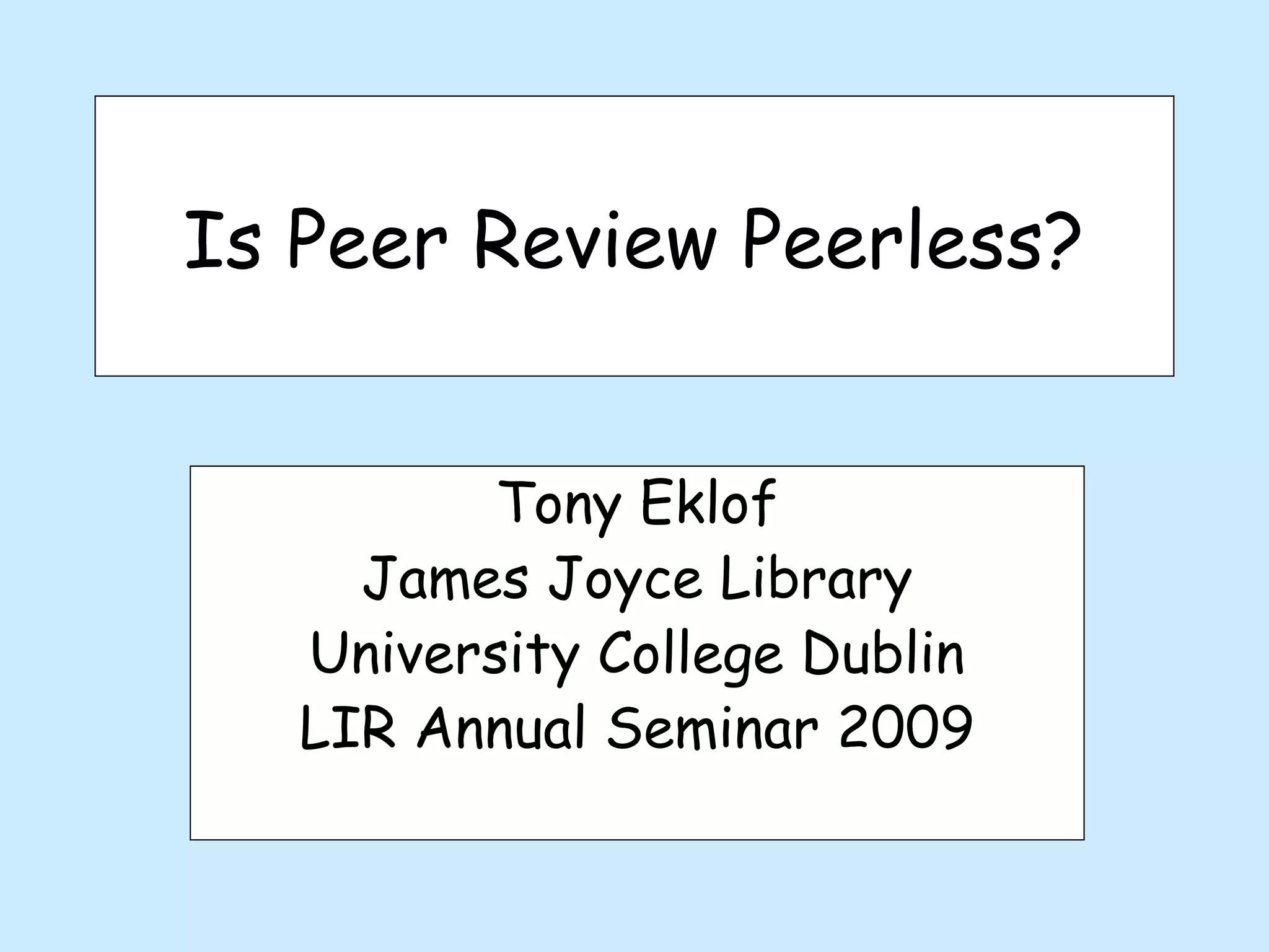 The document discusses peer review, including what it is, the peer review process, criticisms of peer review, and peer review in different fields. It notes that peer review is meant to ensure quality and validity of scholarly work but can be slow, subjective, and biased. While flawed, peer review remains the best system currently for ensuring academic rigor in published work.