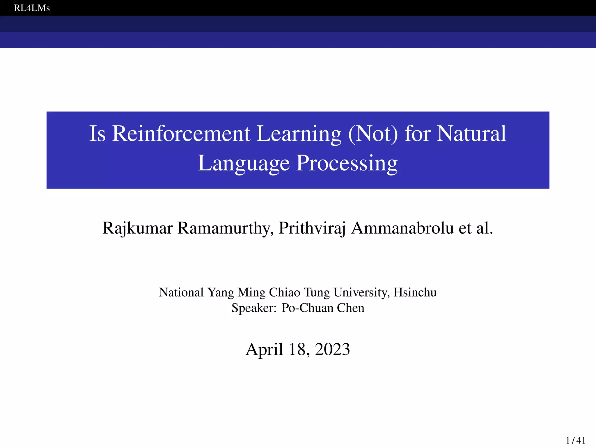 The document presents RL4LMs, a library for training language models with reinforcement learning. It introduces RL4LMs, which enables generative models to be optimized with RL algorithms. It also presents the GRUE benchmark for evaluating models, which pairs NLP tasks with reward functions capturing human preferences. Additionally, it introduces the NLPO algorithm that dynamically learns task-specific constraints to reduce the large action space in language generation. The goal is to facilitate research in building RL methods to better align language models with human preferences.