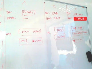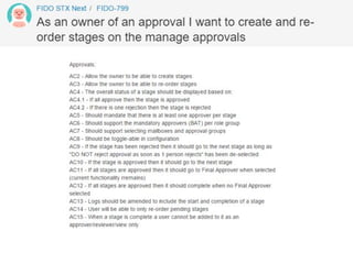 The document discusses patterns and strategies for fixing projects, focusing on user management and backlog refinement, particularly in the context of Agile methodologies. It includes acceptance criteria for project approvals based on business units and mandates by various stakeholders. Additionally, it highlights the importance of visual processing for team members and outlines potential cognitive filters affecting project workflow.