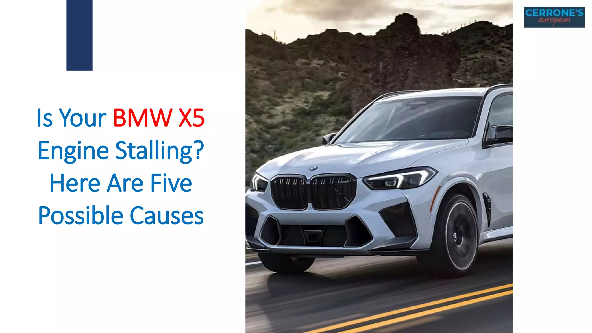 The document outlines five potential causes of engine stalling in a BMW X5, including an empty gas tank, electrical issues, a troubled timing chain, faulty ECU and sensors, and problems with the ignition system. It emphasizes the importance of diagnosing the cause of stalling promptly, as it may indicate serious engine trouble. The reader is advised to either troubleshoot the issue or seek help from a professional mechanic.