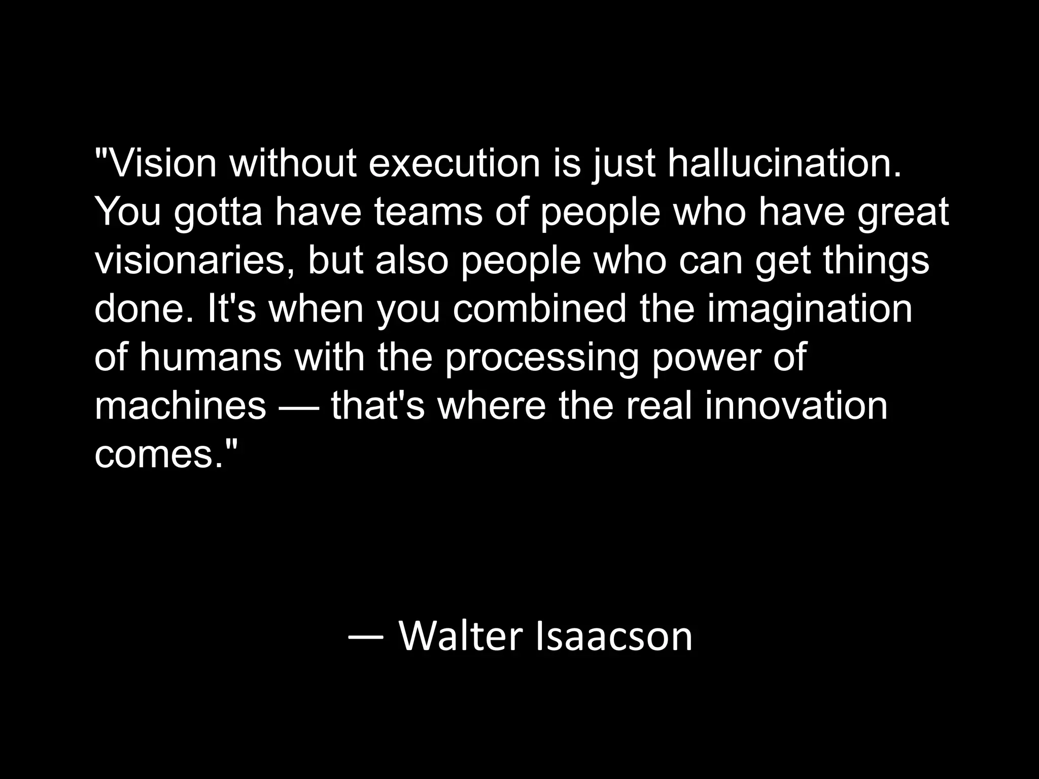 Walter Isaacson emphasizes that having a vision alone is insufficient; execution is essential for success. He advocates for a team that merges visionary thinking with practical execution. The true innovation arises from the synergy between human imagination and machine processing power.