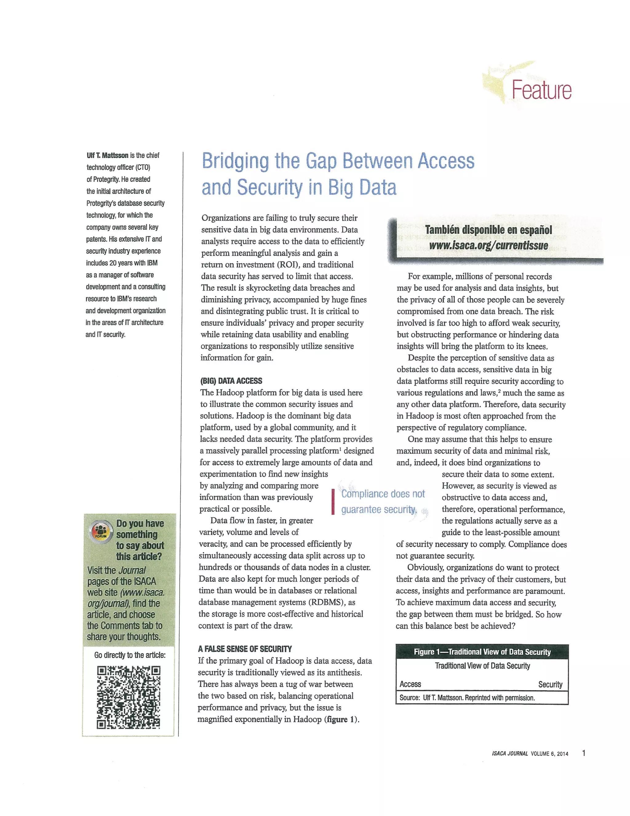 Organizations are failing to truly secure sensitive data in big data environments due to prioritizing data access over security. Traditional security methods obstruct access. Tokenization bridges this gap by replacing sensitive data with randomized tokens, securing data while still enabling analytics. A proper data security methodology includes classifying sensitive data, discovering its locations, applying the best security method like tokenization, enforcing policy, and monitoring access. This balances privacy, usability, and compliance.