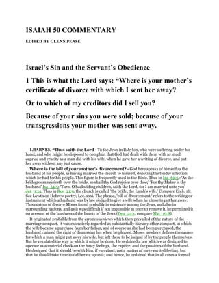 1. God challenges Israel, saying he did not divorce or sell them like an unjust husband or debtor might.