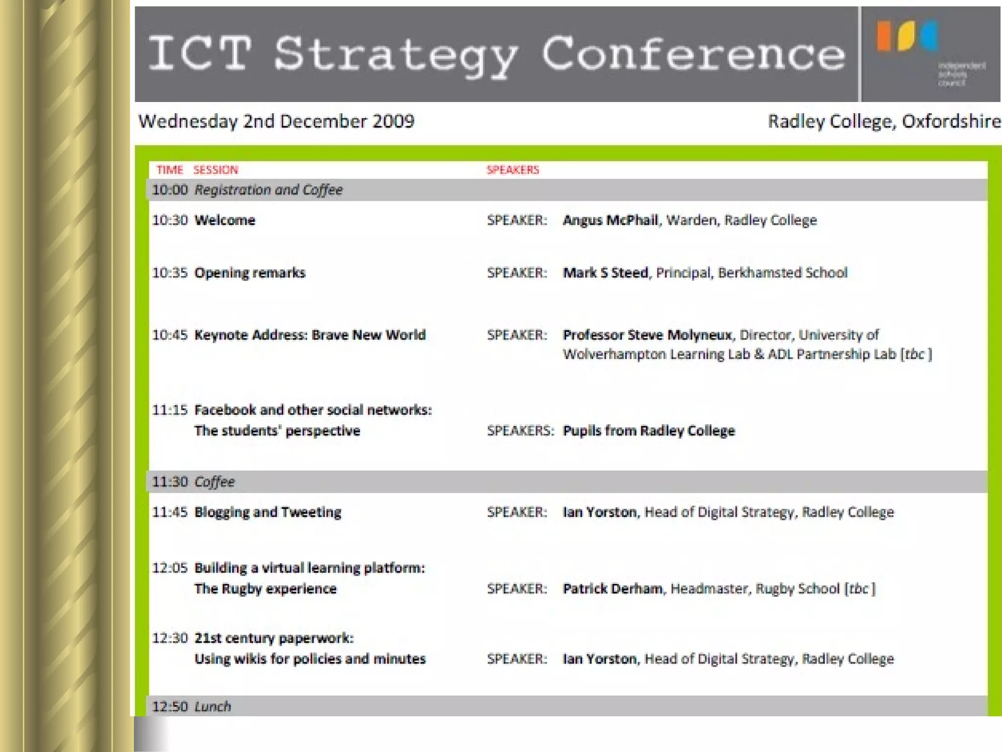 The document discusses strategies for integrating digital technologies into independent schools. It identifies defining the role of the ICT coordinator as an important starting point. Several factors that can help or hinder ICT development are discussed, including teacher skills and support from senior leadership. Case studies of schools that have successfully and unsuccessfully implemented ICT strategies are presented. Budgeting challenges and creating an asset register are also covered.