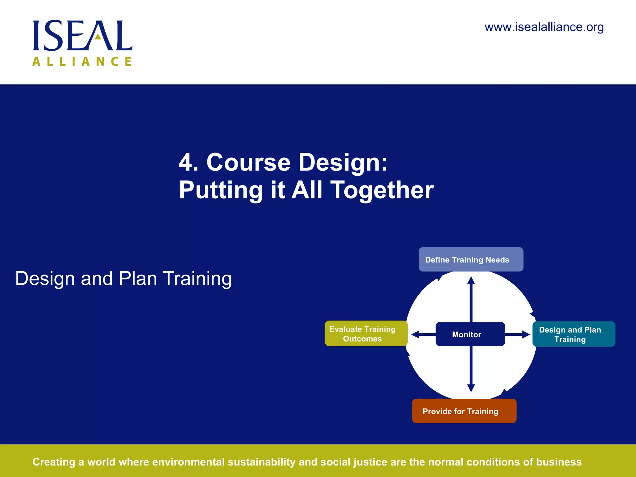 The document provides guidance on designing training courses by outlining steps to define training needs, develop content, and structure courses. It recommends mapping learning objectives to teaching tools that address different learning styles. Content should identify universal versus customizable portions. Stakeholder input and reviewing common problems can help customize content by industry or region. Courses should have clear modular structure alternating between knowledge and skills, while addressing different learning styles for each module.