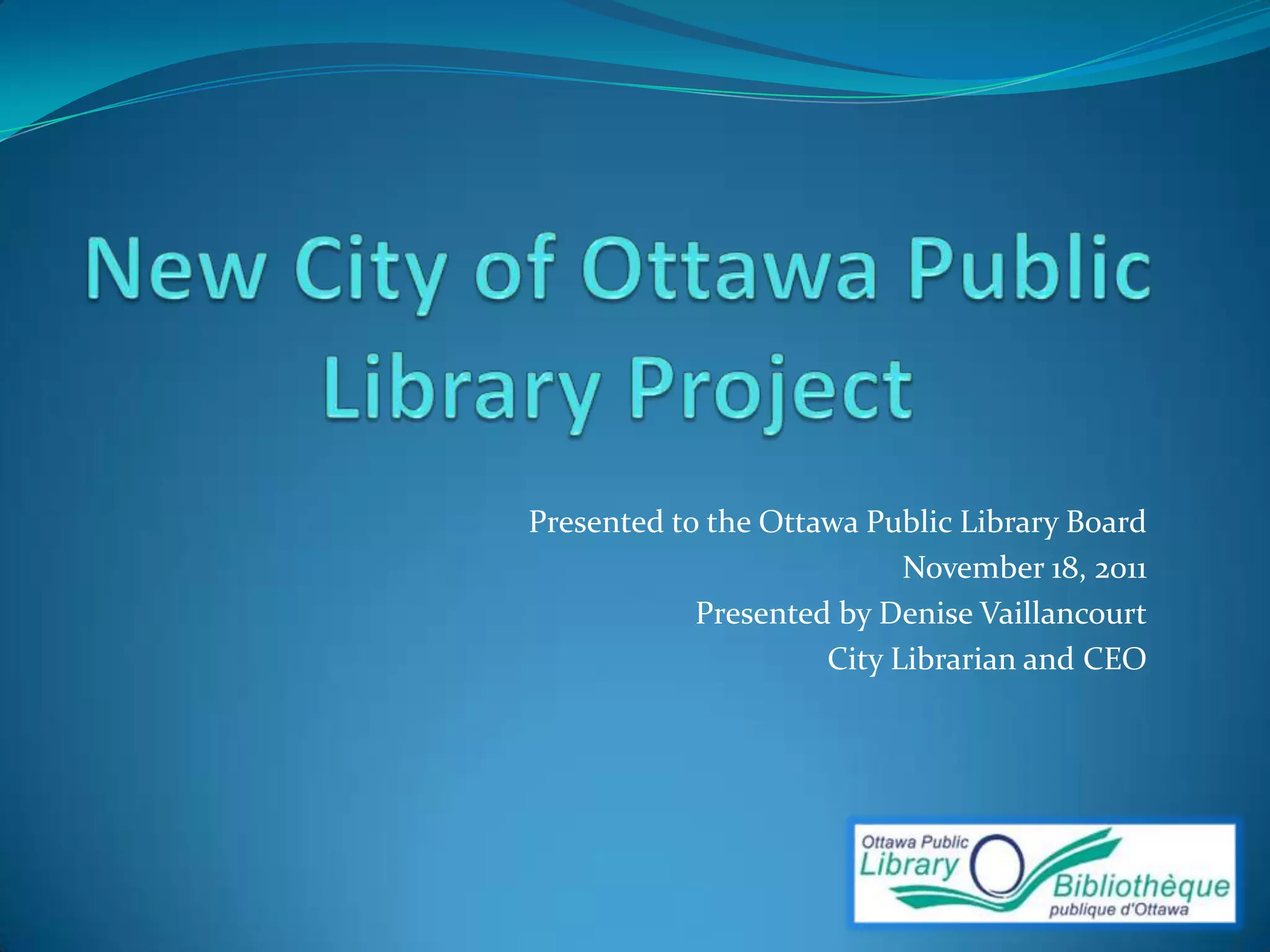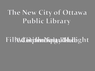 The document outlines plans for a new central library building in Ottawa, including: