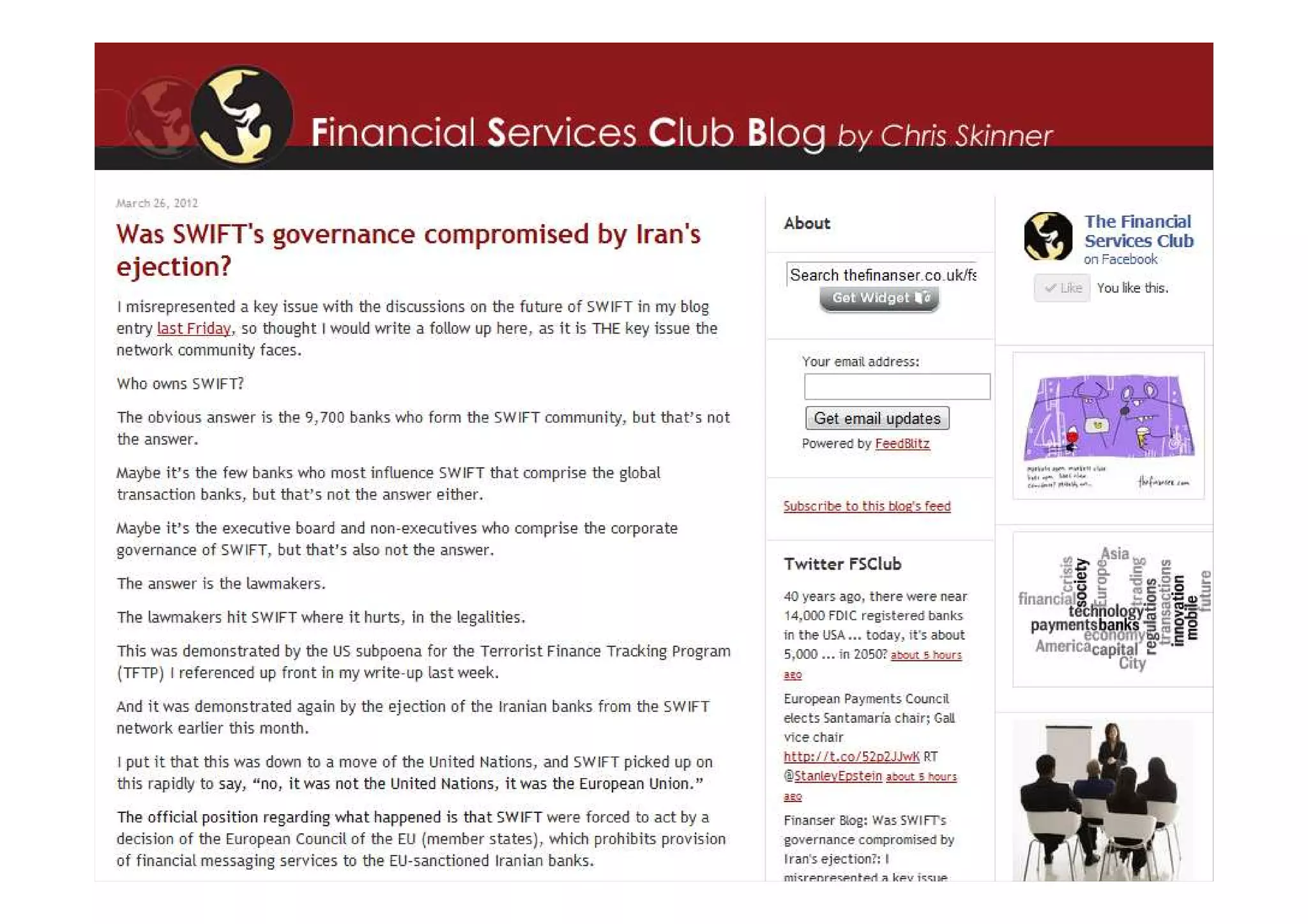 The document appears to be a series of slides by Chris Skinner discussing various topics related to banking, finance, regulation and the global economy over time. Some key points covered include discussions of past financial crises and regulations like Dodd-Frank, the rise of China and other emerging economies, changing roles of currencies, and future predictions around developments in areas like Africa, Latin America, and changes in European and global financial systems. The slides are dated ranging from the 2000s through the 2030s.