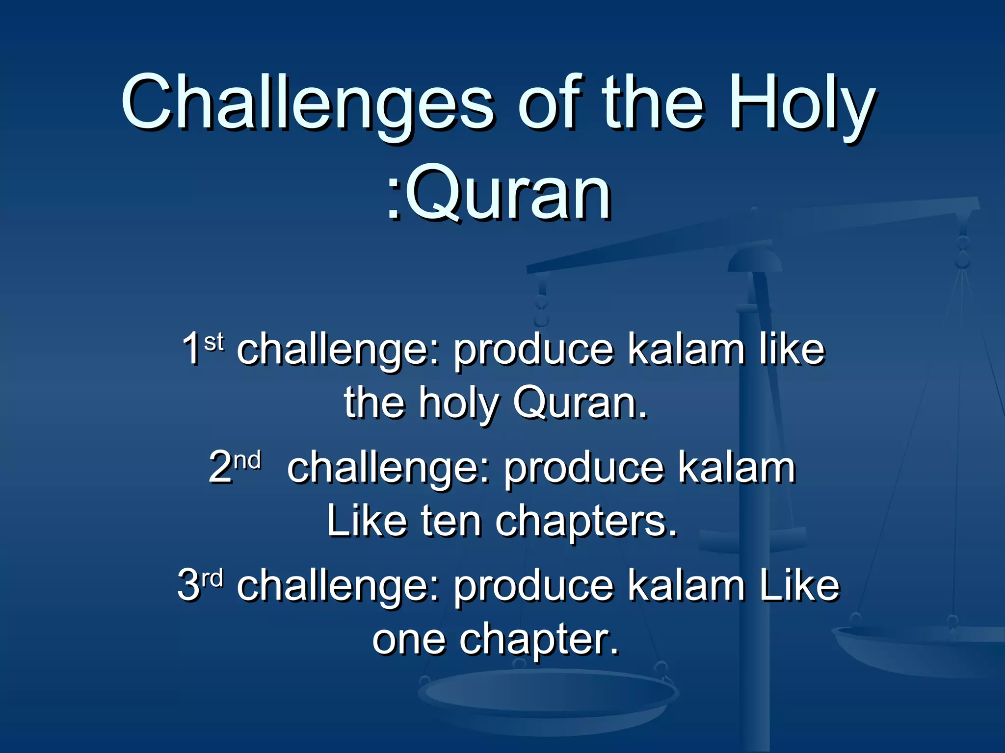 This document discusses the miracle of the Holy Quran and its challengers. It begins by defining the Arabic term "ijaz" which means the Quran defeated all humans and jinn. It then lists 3 challenges to produce speech like the Quran. It discusses the need for the science of rhetoric to explain the miracle and lists early scholars who wrote on this. Some reasons the Quran is a miracle include its beautiful style, predictions, and revealing of secrets. It discusses two types of challengers - those who claimed prophethood like Musailima and Aswad Ansi, and those who produced their own speech like Nazar bin Haris and Abdulla bin Muqaffa.
