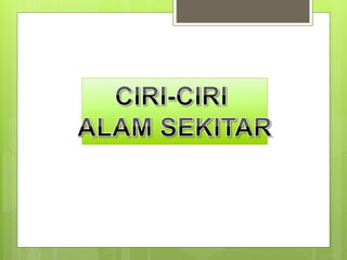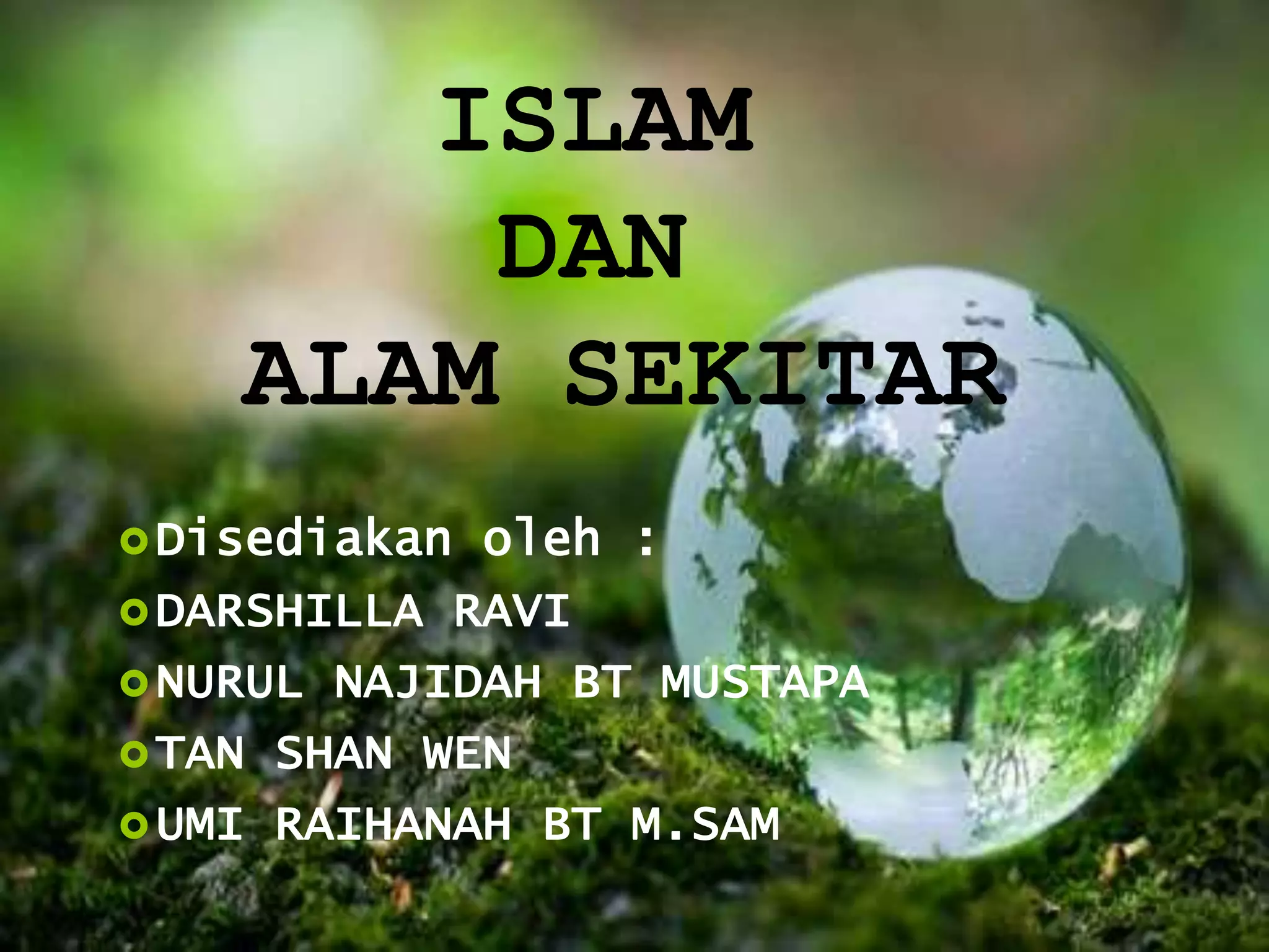 Dokumen ini membahas hubungan antara Islam dan alam sekitar, menjelaskan bahwa alam sekitar meliputi semua benda hidup dan tidak hidup di bumi serta pentingnya menjaga keseimbangan dan kualitasnya. Islam mengatur hubungan manusia dengan alam melalui akidah, syariah, dan akhlak, serta menjelaskan konsekuensi pencemaran yang dapat merugikan ekosistem dan kesehatan manusia. Pemeliharaan alam menjadi tanggung jawab setiap individu untuk mencapai kesejahteraan dan keredaan Tuhan.