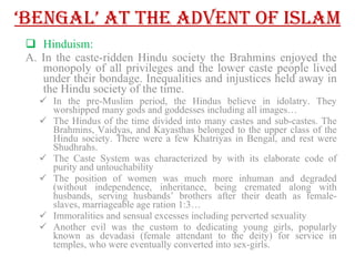 1) Arab traders brought Islam to the Bengal coast as early as the 8th century through maritime trade.