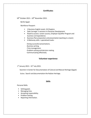 Islam Sayed Bahar is seeking an accountant position in Kuwait. He has a Bachelor's degree in Commerce and Accounting from the Institute of Advanced Studies. He has over 2 years of work experience as an accountant in Egypt where he prepared invoices, reports, financial statements, and assisted clients. Bahar also holds certificates in business English, career success training, and business plan preparation. He has strong computer skills in MS Office and research abilities.
