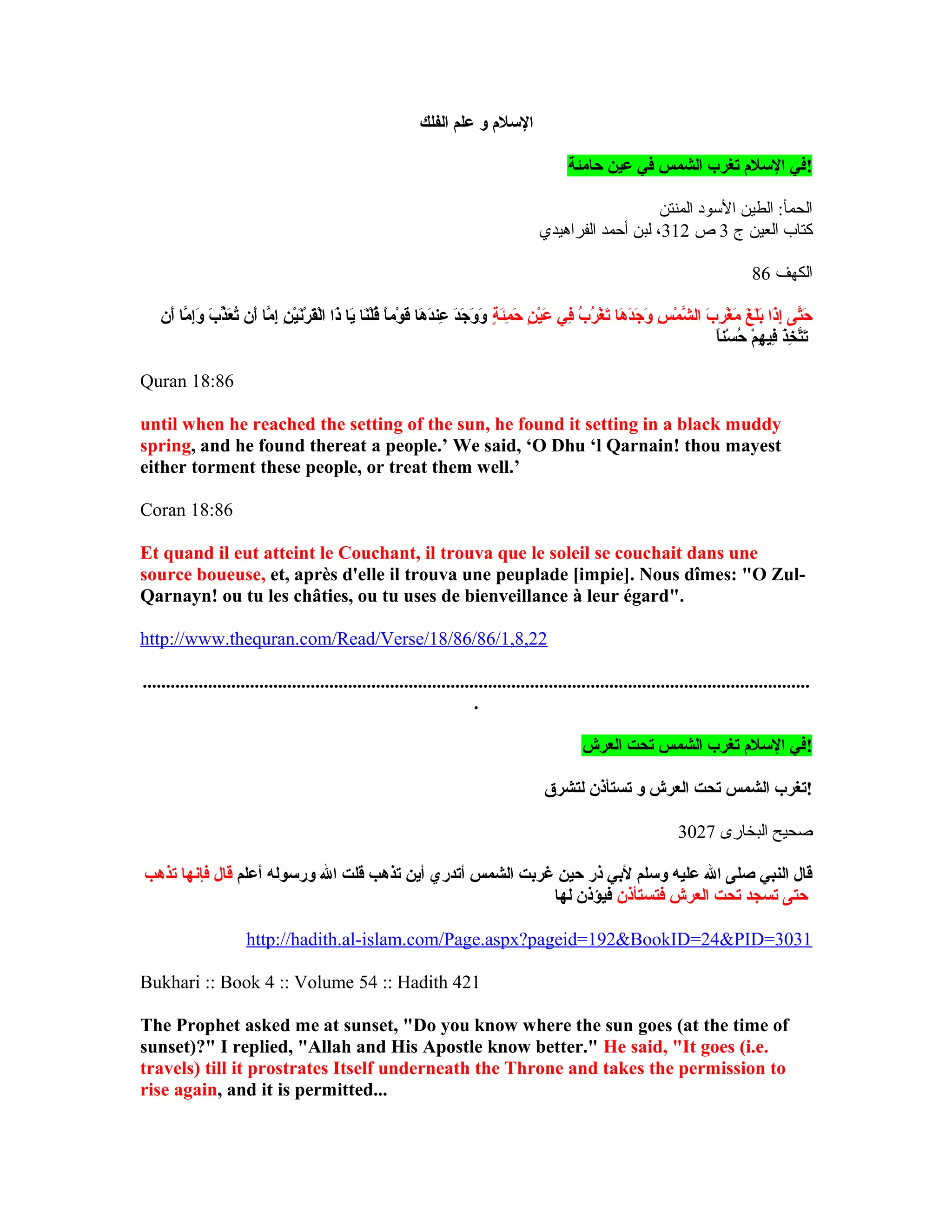 منها يقبل فل تسجد أ ن ويوشك لها فيؤذ ن فتستأذ ن العرش تحت تسجد حتإ ىارجعي لها يقال لها يؤذ ن فل وتستأذ ن