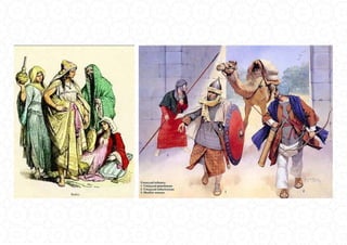 The document provides an overview of the rise and fall of the Islamic caliphates, beginning with the Rashidun Caliphate established after the death of the Prophet Muhammad and ending with the abolition of the Ottoman Caliphate in 1924. It discusses the major caliphates that ruled the Islamic world chronologically, including the Umayyad Caliphate, Abbasid Caliphate, and Ottoman Caliphate. For each caliphate, it summarizes key events and battles, territories controlled, reasons for decline or fall, and clothing styles during the period.