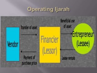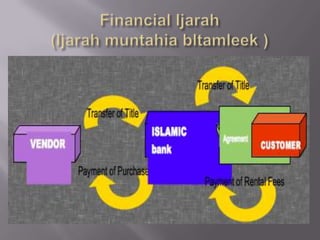 1. The document discusses ijarah (leasing) in Islamic finance. It provides definitions and conditions for contracts to be considered ijarah.