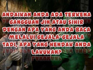 Dokumen tersebut membahas tentang kepercayaan akan keberadaan makhluk halus seperti jin menurut ajaran Islam berdasarkan Al-Quran dan hadis, termasuk gejala-gejala kemasukan jin ke dalam tubuh manusia dan cara-cara mencegahnya melalui amalan-amalan ibadah dan zikir.