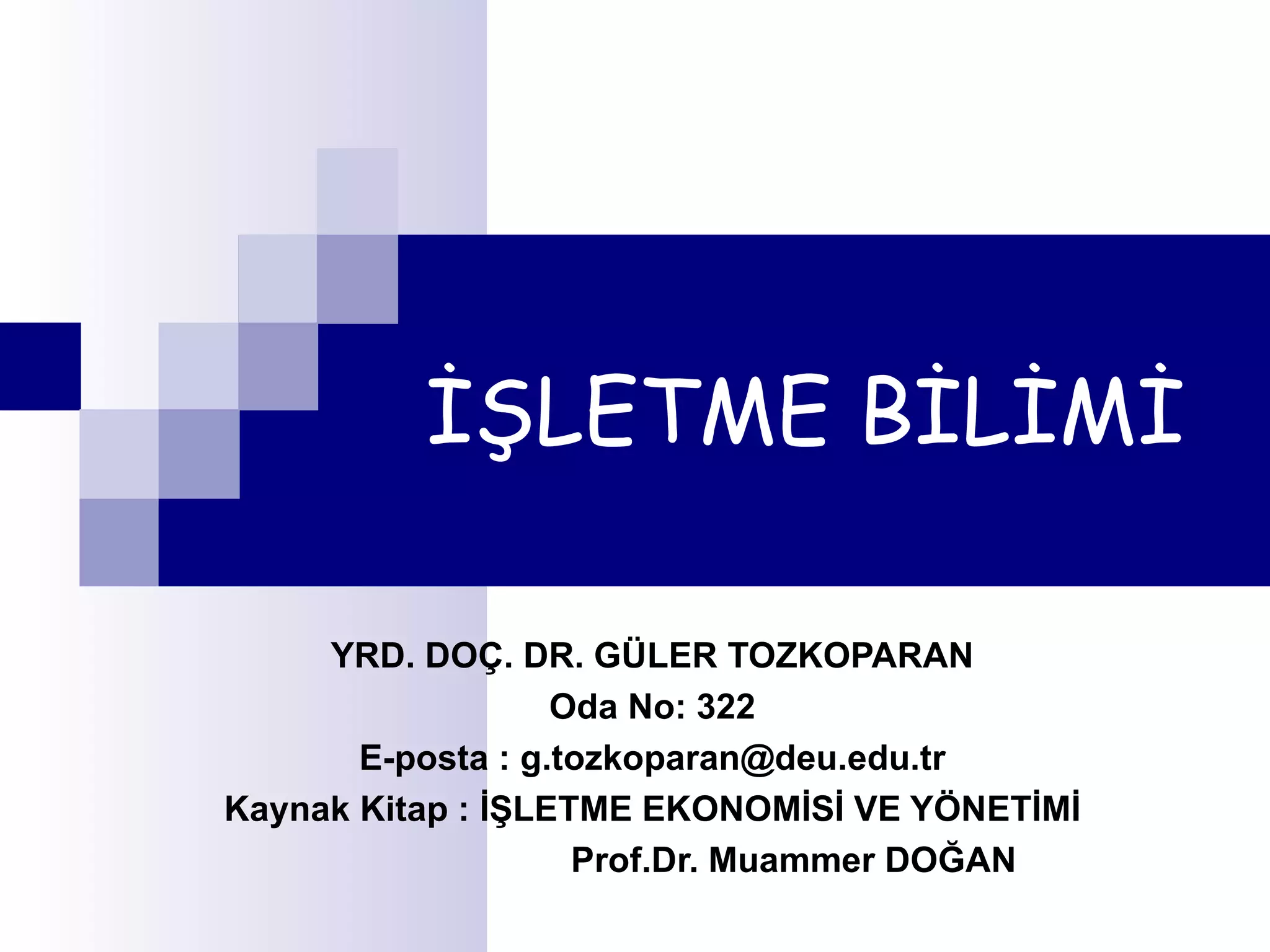 İŞLETME BİLİMİ YRD.DOÇ. DR. GÜLER TOZKOPARAN Oda No: 322 E-posta : g.tozkoparan@deu.edu.tr Kaynak Kitap : İŞLETME EKONOMİSİ VE YÖNETİMİ Prof.Dr. Muammer DOĞAN