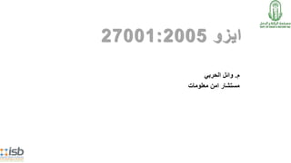 تقدم وثيقة التوعية بمعيار ISO 27001 أساسيات أمن المعلومات وأهمية أنظمة إدارة أمن المعلومات (ISMS) في تعزيز استمرارية الأعمال وأمان أنظمة تكنولوجيا المعلومات. تشمل الورشة أهدافًا تعليمية لتعريف الحضور بمفاهيم مثل السرية والتكامل والتوافر، وتسليط الضوء على المخاطر المرتبطة بأمن المعلومات، بما في ذلك التهديدات الداخلية. كما تستعرض فوائد الشهادة ISO 27001 في تحسين موافقات الأعمال والامتثال للمتطلبات القانونية.