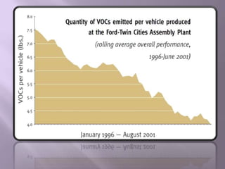 The document discusses ISO 14000, an international standard for environmental management systems. It provides an overview of key aspects of ISO 14000 such as being voluntary and flexible. It then discusses the history and development of ISO 14000 from early environmental initiatives in the 1970s to it being published in 1996. Finally, it provides details on the requirements and benefits of an environmental management system based on ISO 14000 standards using Ford Motor Company as a case study.