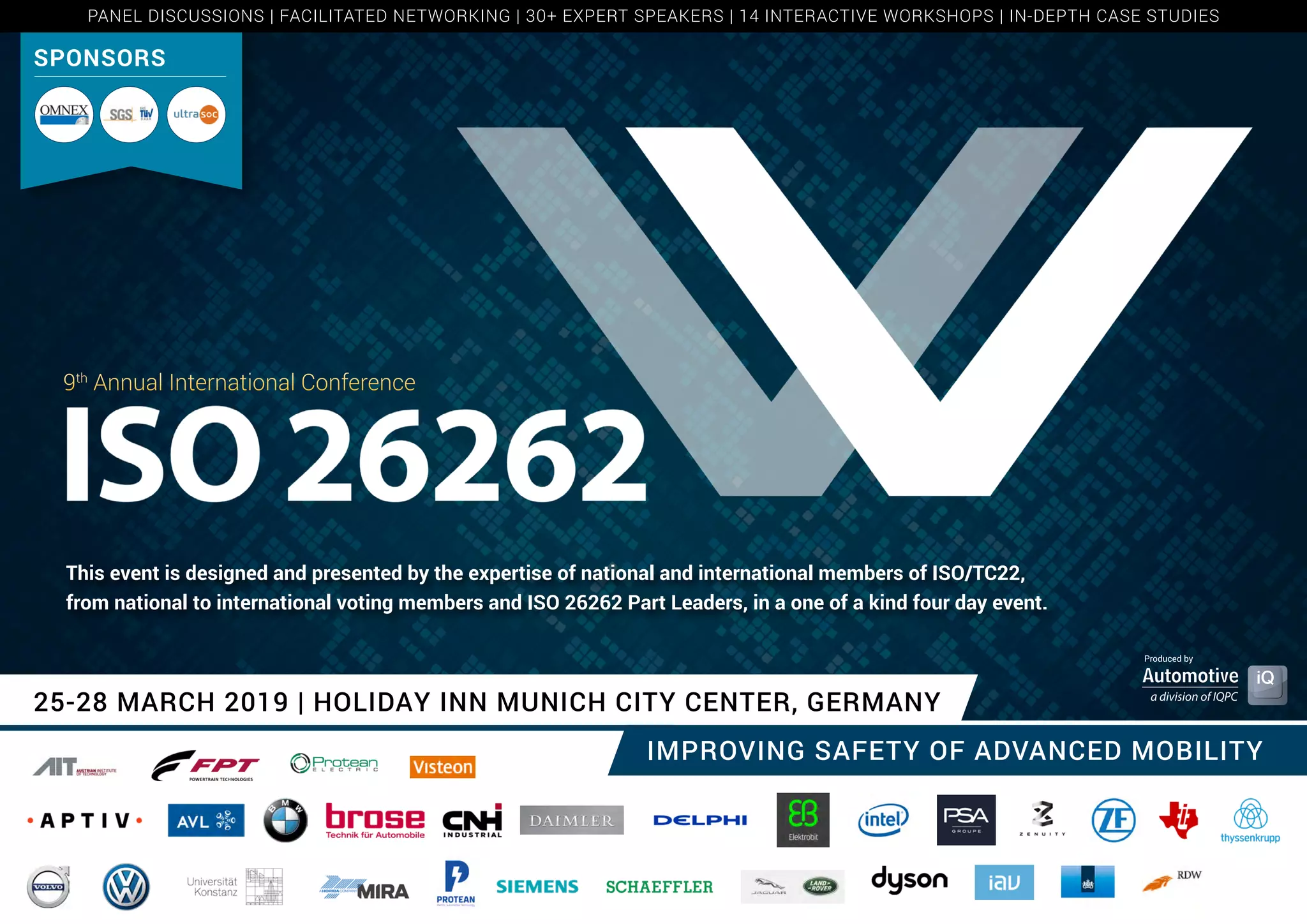The 9th Annual International Conference on improving the safety of advanced mobility took place from March 25-28, 2019, in Munich, Germany, featuring over 40 expert speakers and various workshops. The event focused on the challenges of safety and security in the automotive sector, including topics related to ISO 26262, functional safety development, and autonomous driving. Attendees engaged in networking, panel discussions, and case studies to address the evolving complexities in automotive engineering.