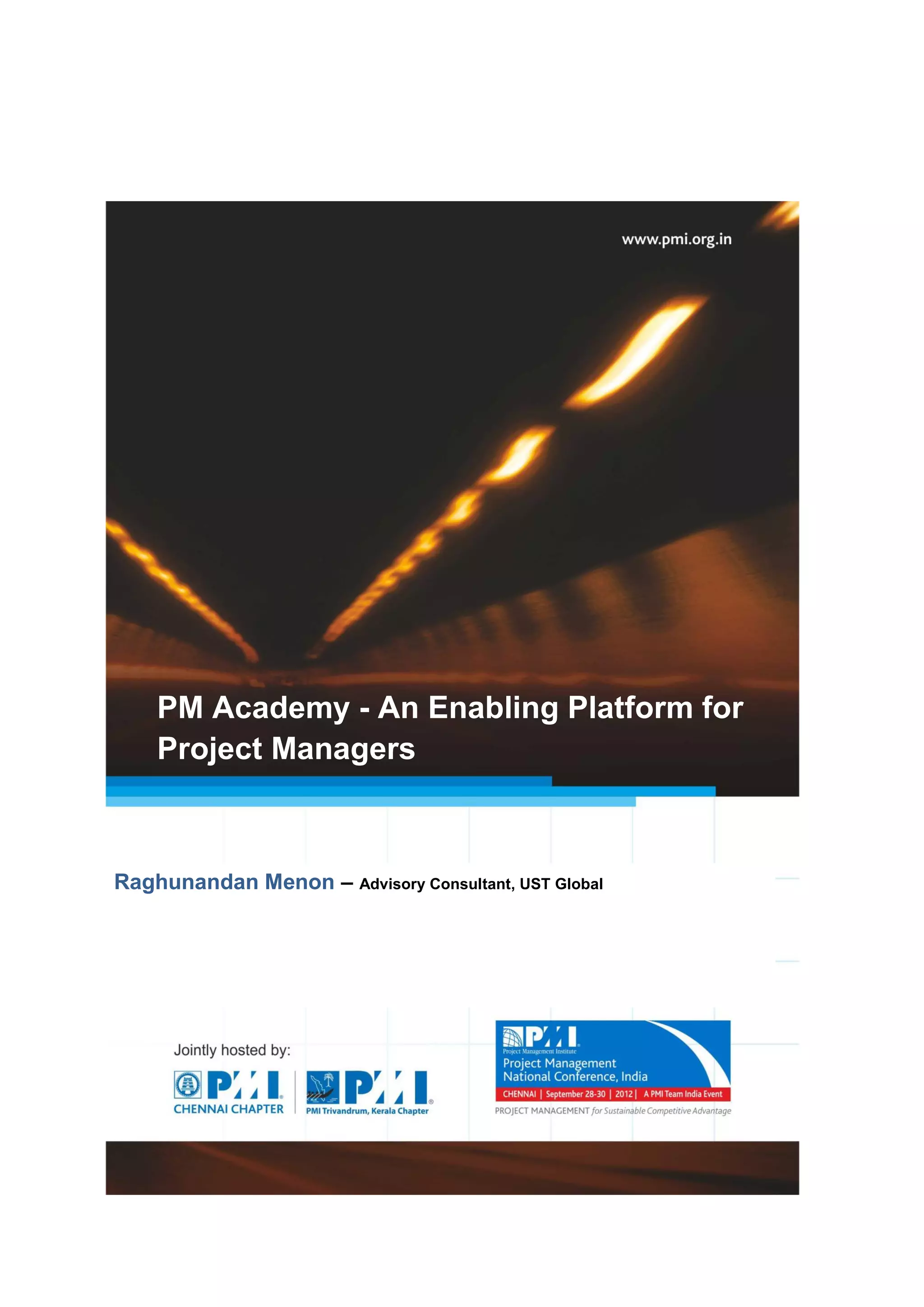 - The PM Academy was designed to align with industry standards like PMBOK while blending with the organization's needs and culture. It aimed to sustainably enable PM competency development.