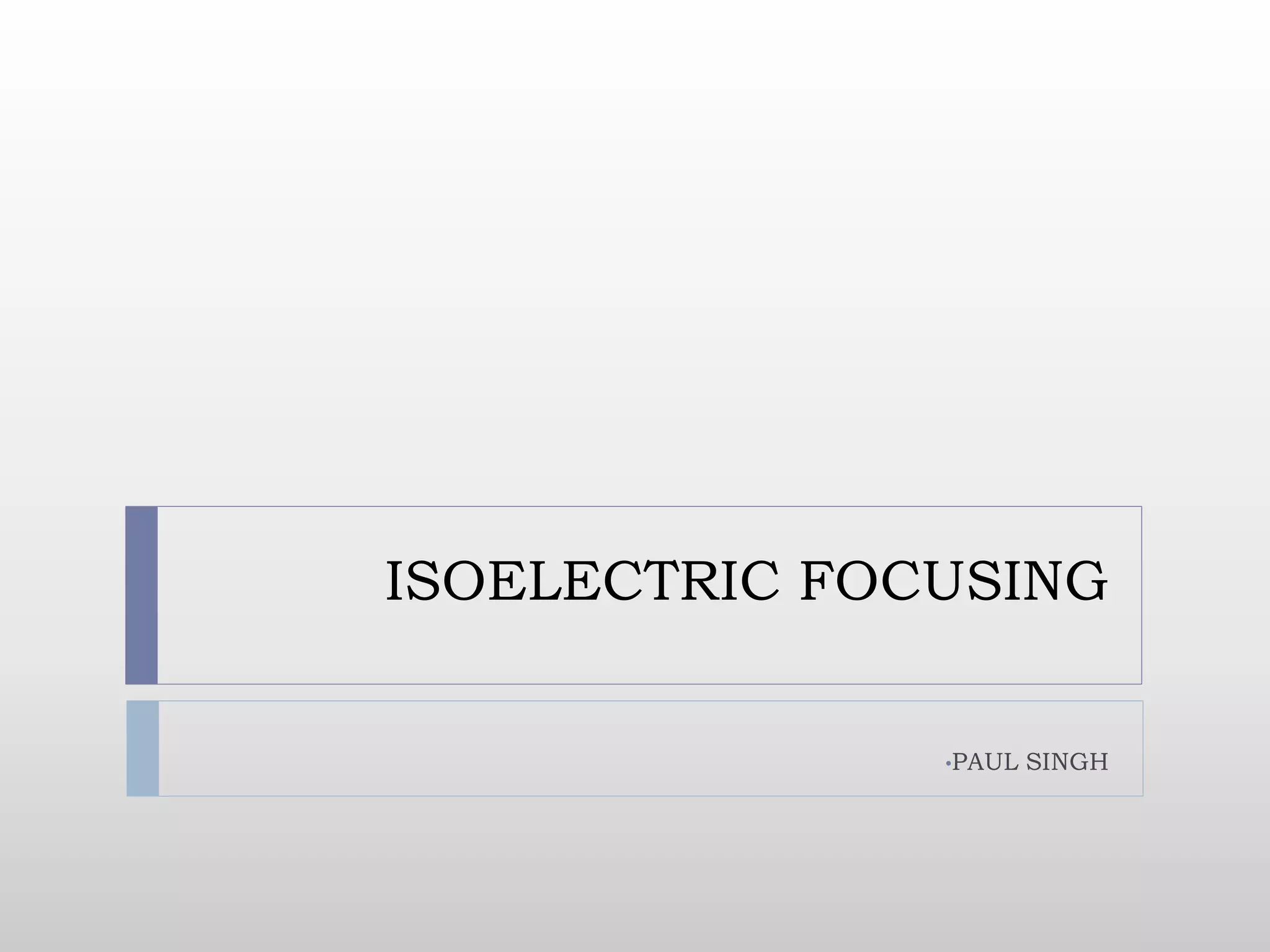 Isoelectric focusing is a technique that separates molecules like proteins based on their isoelectric point, which is the pH at which the molecule has no net charge. It was developed in the 1960s and allows for much better resolution than older techniques. The process involves creating an immobilized pH gradient using carrier ampholytes, loading protein samples, and applying an electric field to cause proteins to migrate to the point in the gradient matching their isoelectric point. The separated proteins can then be visualized through staining. Isoelectric focusing is useful for applications like identifying serum proteins and aiding in proteomics research.