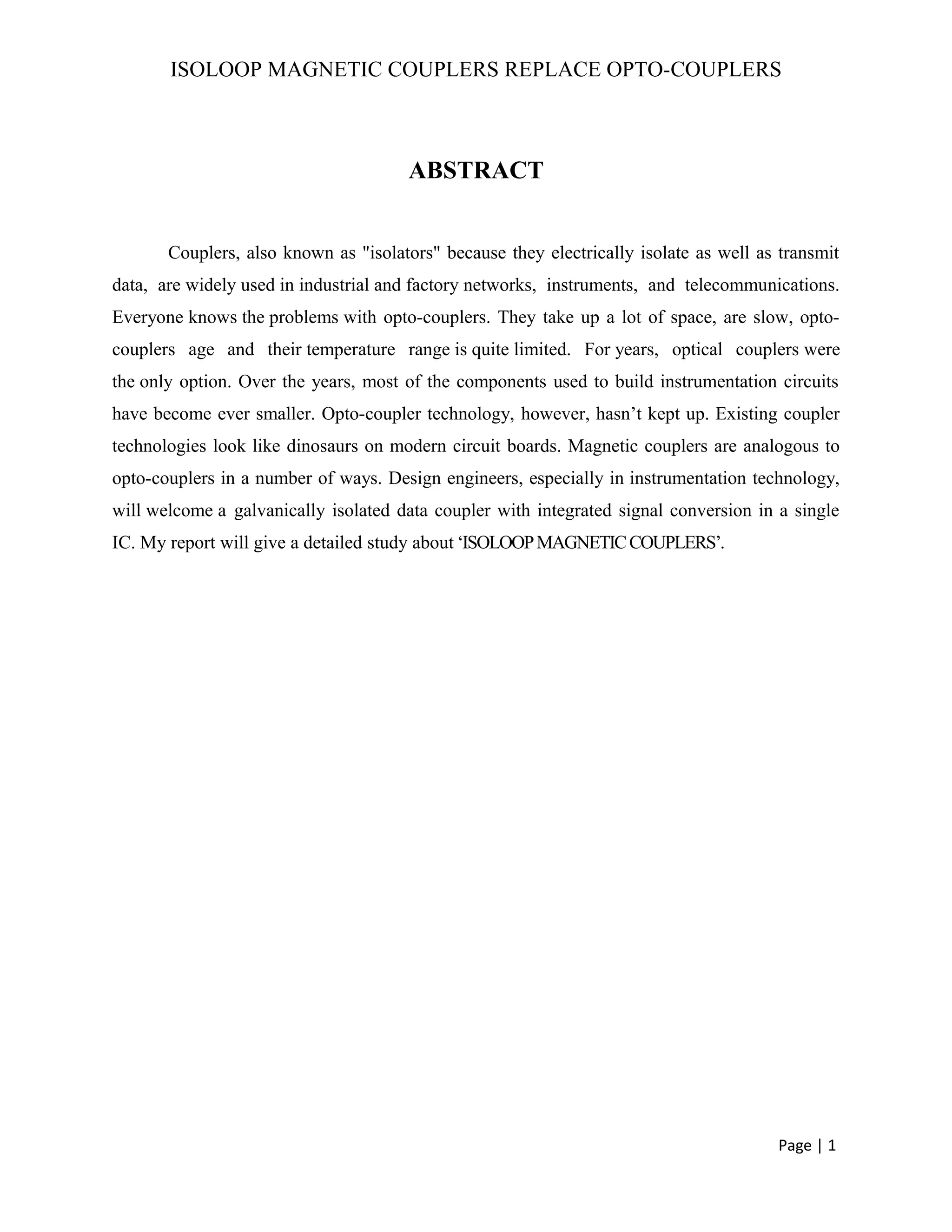 This document discusses magnetic couplers that can replace opto-couplers. Magnetic couplers use giant magneto resistance (GMR) materials and a planar coil to transmit signals magnetically across an insulating layer, providing galvanic isolation. They have advantages over opto-couplers like higher bandwidth, smaller size, better noise immunity, and temperature stability. The document provides details on the construction and working of magnetic couplers and their benefits in industrial applications.
