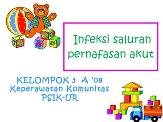 Infeksi saluran pernapasan akut (ISPA) disebabkan oleh mikroorganisme yang ditularkan antar manusia dan dipengaruhi oleh faktor seperti gizi buruk dan lingkungan tidak sehat. Tanda dan gejala ISPA perlu diwaspadai, serta pencegahan penting dilakukan melalui imunisasi, menjaga kebersihan, dan memberikan makanan bergizi. Pengobatan segera diperlukan ketika anak menderita ISPA, tetapi pencegahan lebih baik daripada pengobatan.
