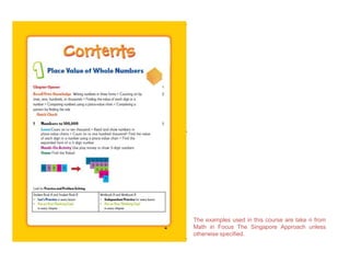 This document summarizes a seminar on the Singapore Math approach. It discusses key concepts like conceptual understanding, variation theory, concrete-pictorial-abstract instruction, and assessment results that show Singapore student performance. Example word problems are provided to illustrate how Singapore Math teaches for understanding over rote memorization.