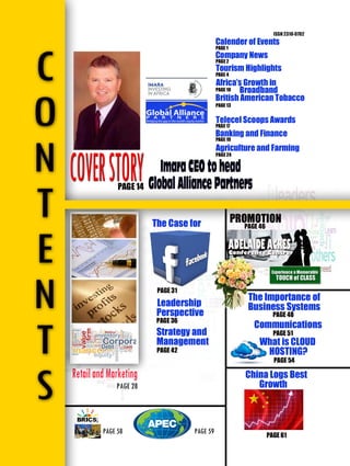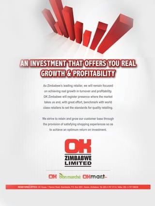 The document summarizes Zimbabwe's plans to host the inaugural African Marketing Summit in 2014. It will be held in Zimbabwe from March 26-28, 2014 under the theme "Making Africa a Better Business Giant through Marketing." The summit is expected to bring hundreds of delegates from around the world to discuss sustainable development through business and marketing. Hosting the event is intended to promote Zimbabwe's local marketing industry and image of the country as a destination.