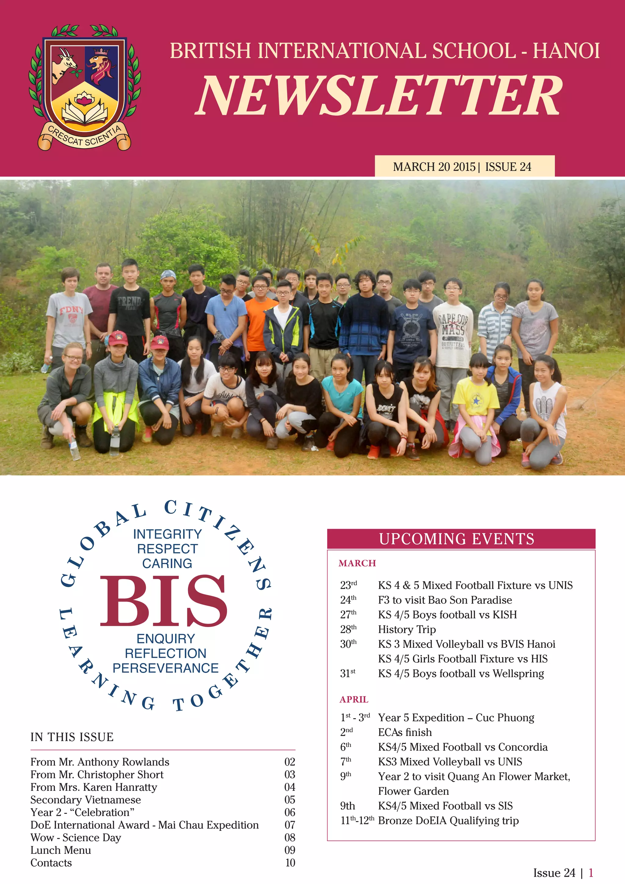 From Mr AnthonyRowlands - Principal of BIS Hanoi