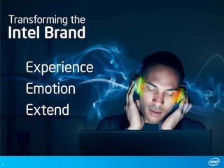 The document outlines Intel's approach to managing crises in social media, highlighting strategic initiatives and responses to issues since 1996. It emphasizes the importance of transparency, detection, and response in handling crises, along with building internal and external relationships. Specific examples and contact information for key team members are provided to illustrate their crisis management framework.