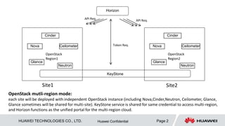 This document discusses issues with running OpenStack in a multi-region mode and proposes Tricircle as a solution. It notes that in a multi-region OpenStack deployment, each region runs independently with separate instances of services like Nova, Cinder, Neutron, etc. Tricircle aims to integrate multiple OpenStack regions into a unified cloud by acting as a central API gateway and providing global views and replication of resources, tenants, and metering data across regions. It discusses how Tricircle could address issues around networking, quotas, resource utilization monitoring and more in a multi-region OpenStack deployment.