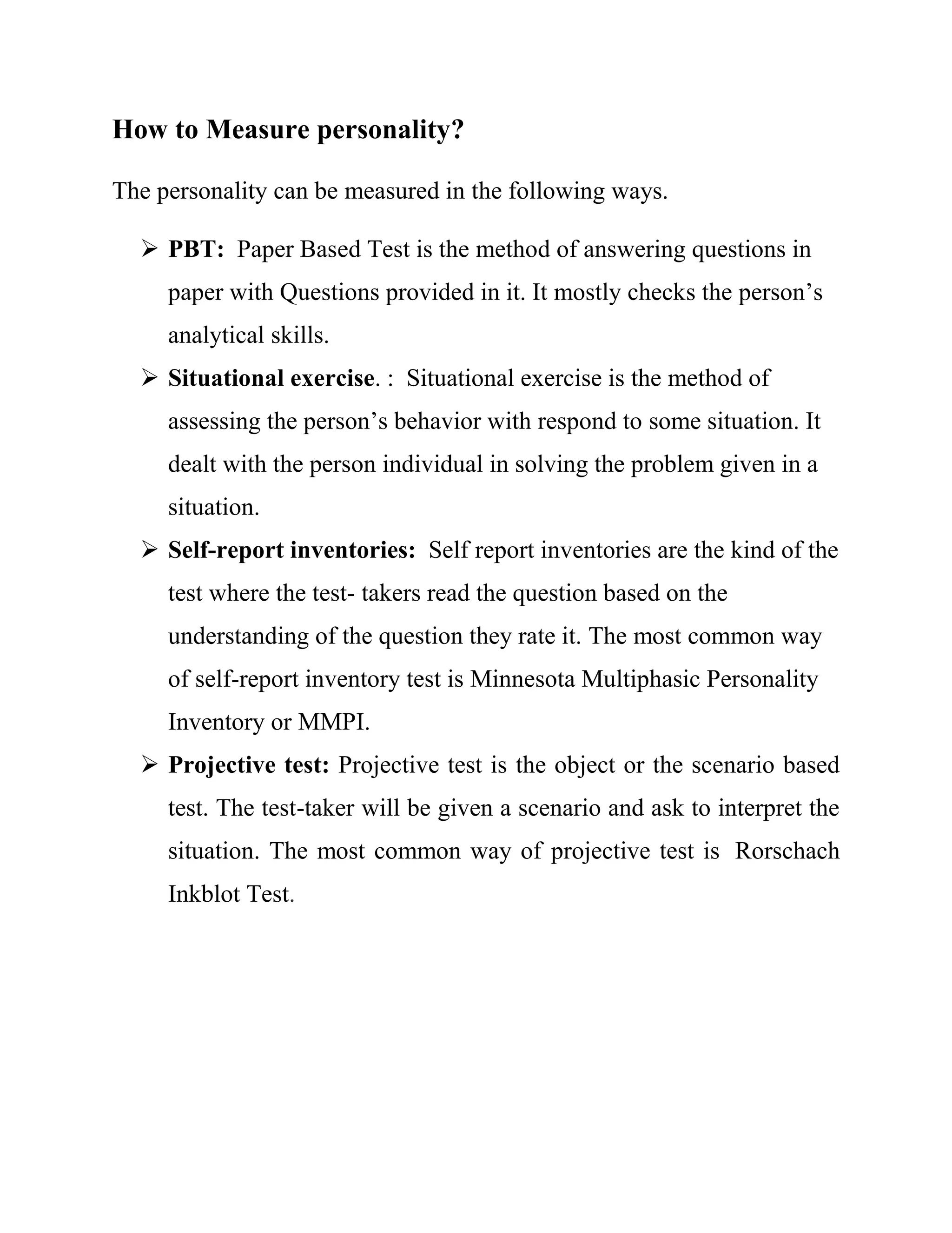 Personality tests assess behavior and are used for various purposes, including recruitment and therapy evaluation. They come in different forms, such as self-report inventories and projective tests, each with advantages and challenges regarding reliability and validity. Although these tests can provide insights into personality, they are not definitive scientific measures.