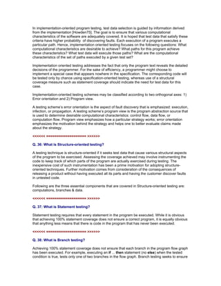 Equivalence partitioning divides inputs into classes that receive equivalent treatment to identify functions and input/output domains. Syntax checking verifies a program can parse incorrectly formatted data. Special value testing selects test data based on function properties to assess accuracy. Implementation-oriented testing guides selection using program details to ensure characteristics are adequately tested. Structure-oriented testing seeks data exercising structural aspects like computations, branches, and data.