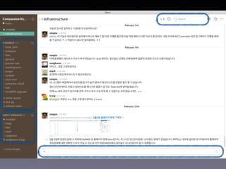 #22 슬랙과 비슷한 서비스로 국내에는 잔디가 있습니다. 잔디도 최근에 투자를 받으며 국내에서 인기가 높아지고 있죠. 어떤 서비스인지 궁금해서 많이는 아니지만 잔디를 써보기도 했습니다. 써보고 내린 결론은 영어 메뉴가 불편한 사람들은 잔디를 써도 나쁘지 않겠다는 생각입니다. 제가 테스트 할 때는 잔디는 integration이 없었습니다. 최근에 잔디 커넥트를 발표하며 integration 기능도 시작했습니다. 하지만 아직은 Slack의 기술력이 월등하게 앞선다는 생각을 지울 수 없습니다. 기존에 기업용 협업툴인 야머나 HipChat 등이 있었지만 Slack이 이렇게 빠르게 사용자층을 확대해가는데는 이유가 있는거죠.