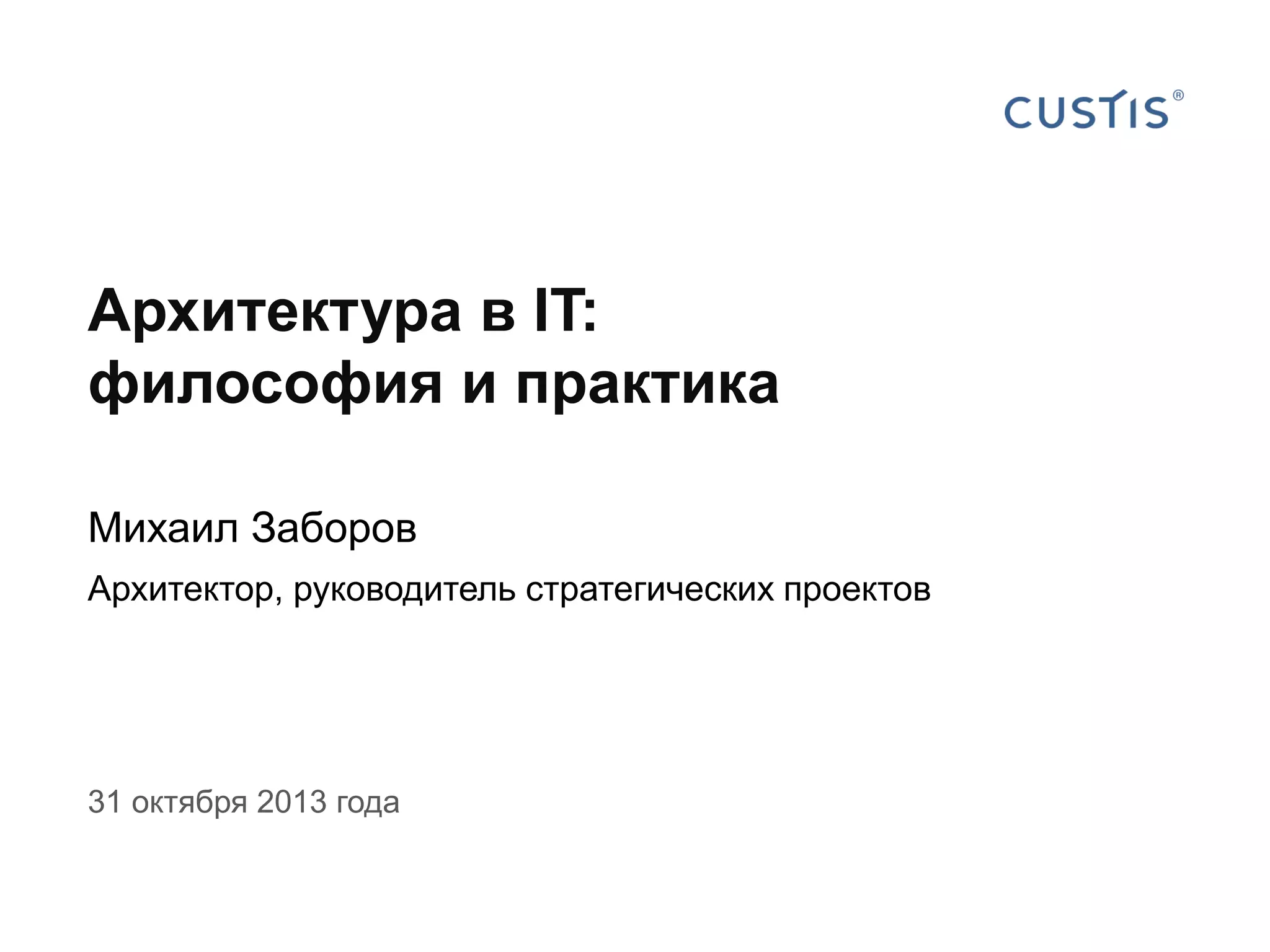 Документ обсуждает архитектуру в IT, подчеркивая ее значение и сложность в разработке корпоративных информационных систем. Архитектура рассматривается как набор решений, которые влияют на успешность проекта, а также как способ согласования действий среди участников процесса. Также в документе упоминаются различные стандарты архитектуры и критерии качества, которые необходимы для эффективного проектирования систем.