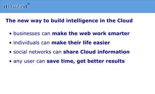 Itduzzit offers a cloud-based platform that enables businesses and individuals to harness web intelligence for smarter communication and automated processes. Users can create 'duzzits' to streamline messages across multiple platforms like SMS, email, and social networks by integrating local and cloud data. The service simplifies the automation of targeted communications, enhancing engagement through timely and relevant content.