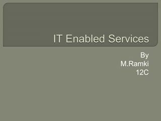 IT enabled services (ITES) use information technology to improve service quality for users. Some key ITES include e-governance, call centers, data management, medical transcription and digitization, and website services. ITES provides employment opportunities by delivering human-intensive services over telecommunications networks or the internet to various business sectors.