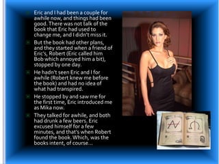 Eric and Mika have become sex slaves to Robert after he discovers a magic book that allows him to control and transform people. Robert uses spells from the book to manipulate Eric and Mika into having sex with each other and pleasing him. Eric struggles against the control of the book but is overwhelmed by intense pleasure. Robert continues transforming and modifying their bodies to better suit his desires, cementing their roles as his obedient sex slaves.